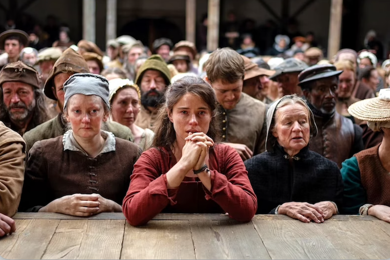 Agnes, most at home in the woods, uses herbs for healing and possesses an intuitive understanding of the world beyond her senses. This invites viewers to connect with her mysterious and caring nature, which has a magical quality. While this is not a spoiler, it’s important to know that the film centers on the death of their young son, Hamnet, in 1596, while they are living in England. He is 11 years old and succumbs to the Bubonic Plague has a magical quality about her. This is not a spoiler; yet, all should know that the film’s focus is the death of their young son, Hamnet, in 1596, while living in England. He’s 11 years old, and he dies from the Bubonic Plague.