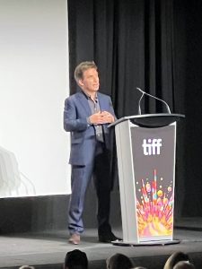 Director James Hawes introducing “One Life” at the Toronto Film Festival 2023 Sarah Knight Adamson Photo Credit